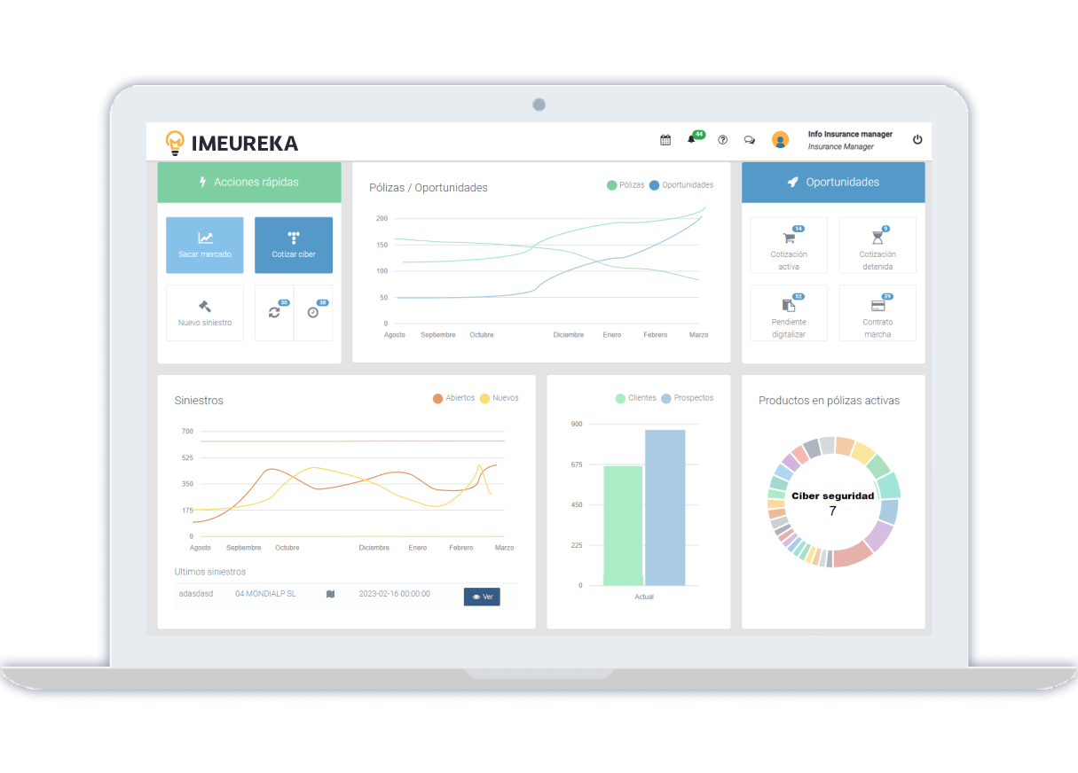 IMeureka es una plataforma colaborativa para corredores de seguros que ofrece herramientas y soluciones para agilizar tareas y aumentar la eficiencia en la gestión de corredurías de seguros. Nuestro marketplace conecta a aseguradoras y corredurías con las mejores soluciones para la gestión de sus negocios y ofrece acceso a mercados alternativos y soluciones externas. Los corredores pueden utilizar IMeureka para colocar seguros y comparar ofertas para sus clientes, y estos últimos tienen acceso a una app personalizada. Ofrecemos una amplia gama de servicios adicionales, como la verificación de riesgos, gestión de siniestros y asesoramiento legal.