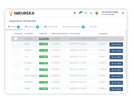 Nuestra plataforma permite realizar un seguimiento eficiente de las operaciones en negociación, y registra automáticamente cotizaciones y rechazos de las compañías.